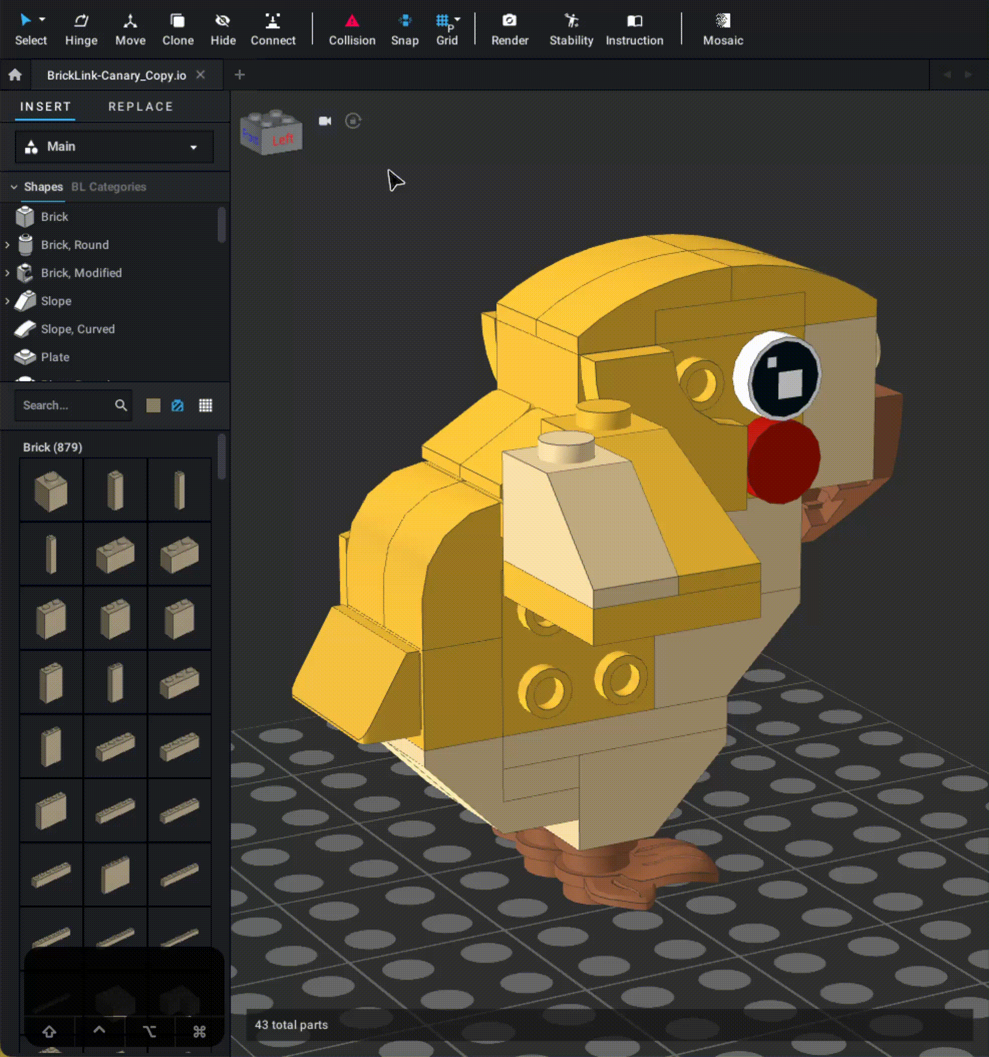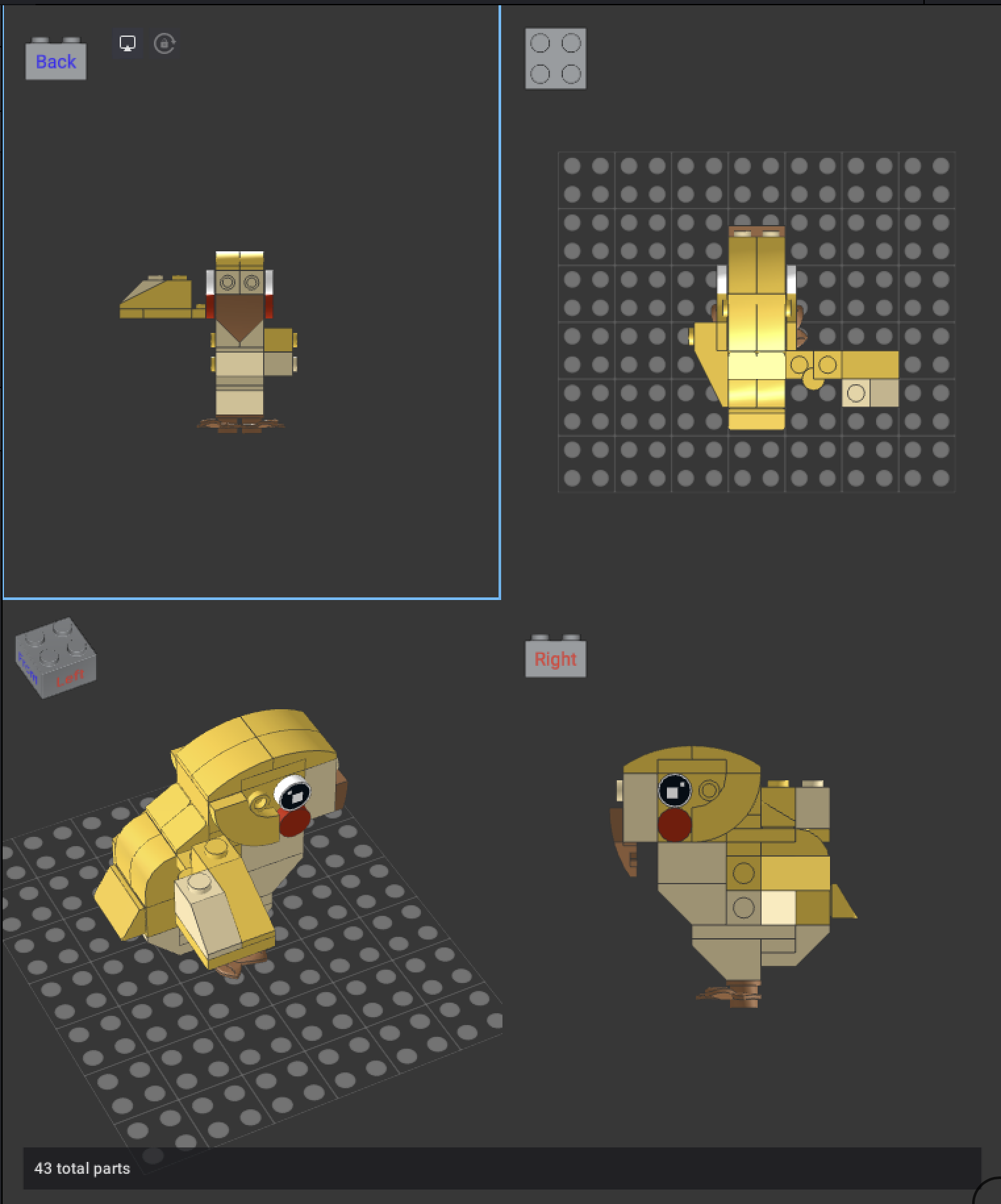 Orthogonal/Orthographic: The last button on the right lets you switch to an orthographic view. All the parts will be the same size whether they’re on the front or the back of the model. This is the opposite of the default perspective view where parts are smaller in the back and bigger on the front, like in real life.